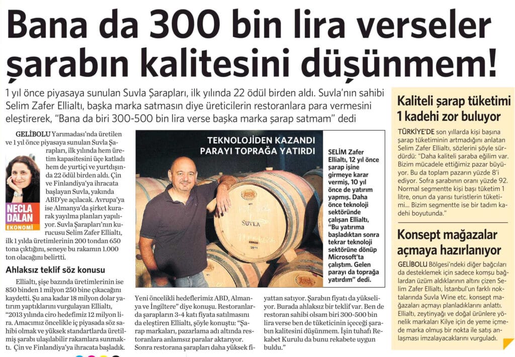 Suvla Şarapları hakkında çıkan basın haberlerini bulabilirsiniz.