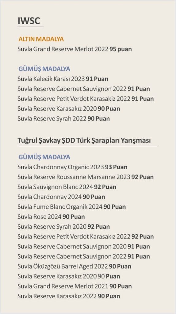 International Wine & Spirit Competition (IWSC) ve Tuğrul Şavkay Türk Şarapları Yarışması’ndan Suvla’ya 1 Altın, 11 Gümüş Madalya